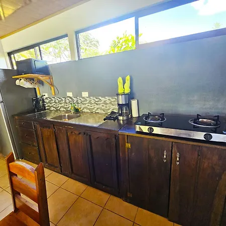 Cette villa Famillies Getaway - 3Bed & 2Bath In Arenal Volcano propose une cuisine équipée avec une bouilloire électrique, un réfrigérateur et de la verrerie à l'usage des clients.